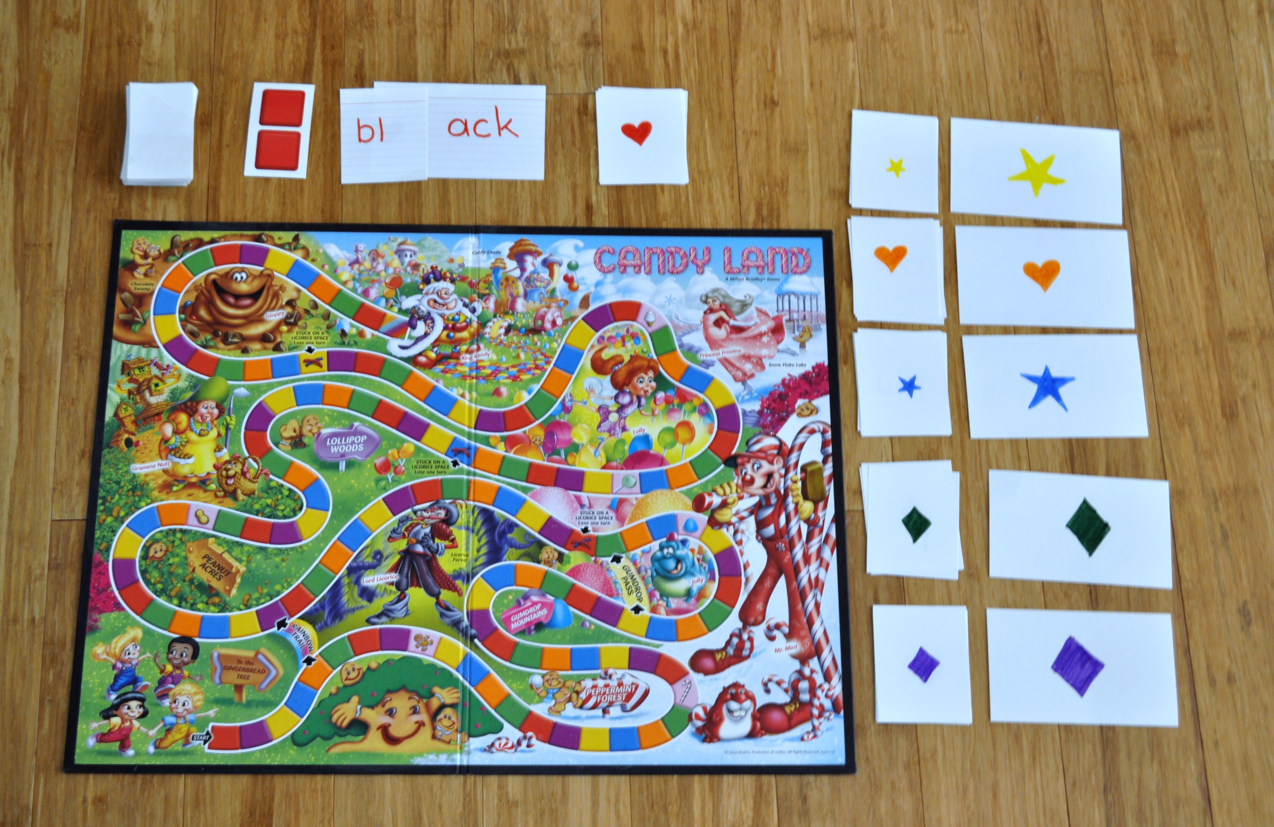 Repurpose that old CandyLand game you have sitting around as a learning game for a whole new spin on “family game night”.